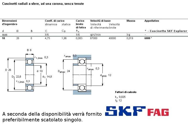 cuscinetto ad un giro di sfere (sfere a vista) a carico radiale.Int. mm.10 - Est. 26mm. - Spessore mm.8 SERIE LEGGERA