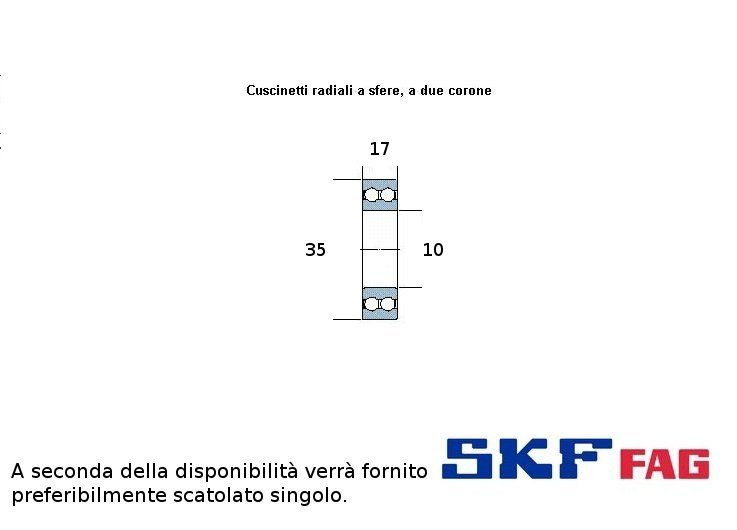 cuscinetto ad 2 giri di sfere rigido a carico radiale.Int. mm.10 - Est. 35mm. - Spessore mm.17 (soluzione ideata per poter sopportare il doppio del carico di portata pur tenendo invariate le misure int. ed est. delle serie ad 1 giro di sfere: 6300)