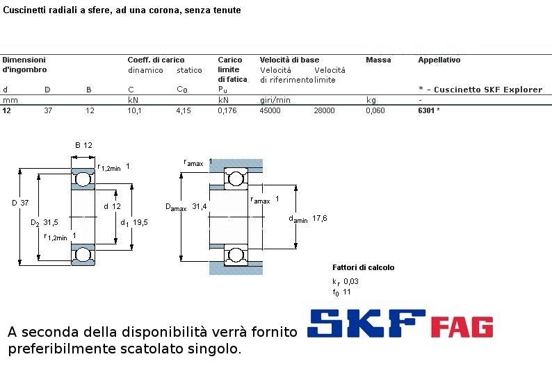 cuscinetto ad un giro di sfere (sfere a vista) a carico radiale.Int. mm.12 - Est. 37mm. - Spessore mm.12 SERIE PESANTE