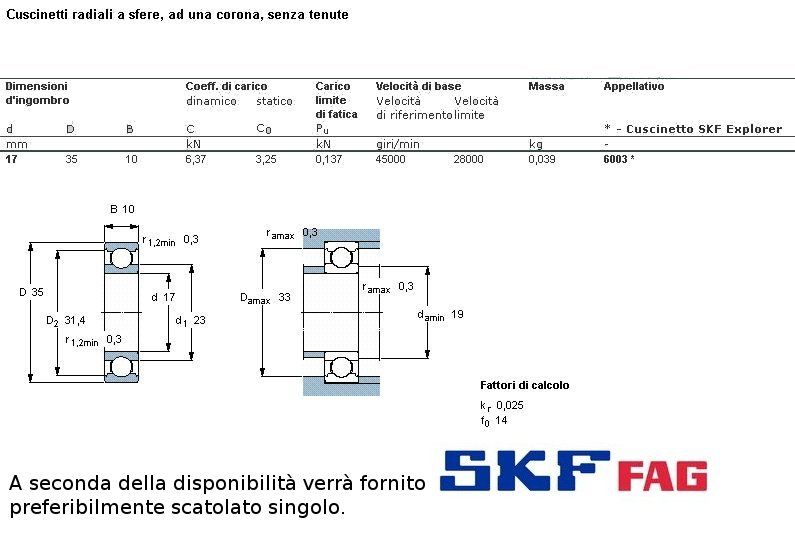 cuscinetto ad un giro di sfere (sfere a vista) a carico radiale.Int. mm.17 - Est. 35mm. - Spessore mm.10 SERIE LEGGERA