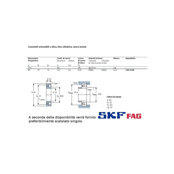 cuscinetto ad 2 giri di sfere orientabile a carico radiale.Int. mm.17 - Est. 47mm. - Spessore mm.14 (soluzione ideata per poter sopportare il doppio del carico di portata pur tenendo invariate le misure int. ed est. delle serie ad 1 giro di sfere: 6300 ed in più, grazie all'orientabilità della sede int. sopporta vibrazioni e disassamenti dell'albero))