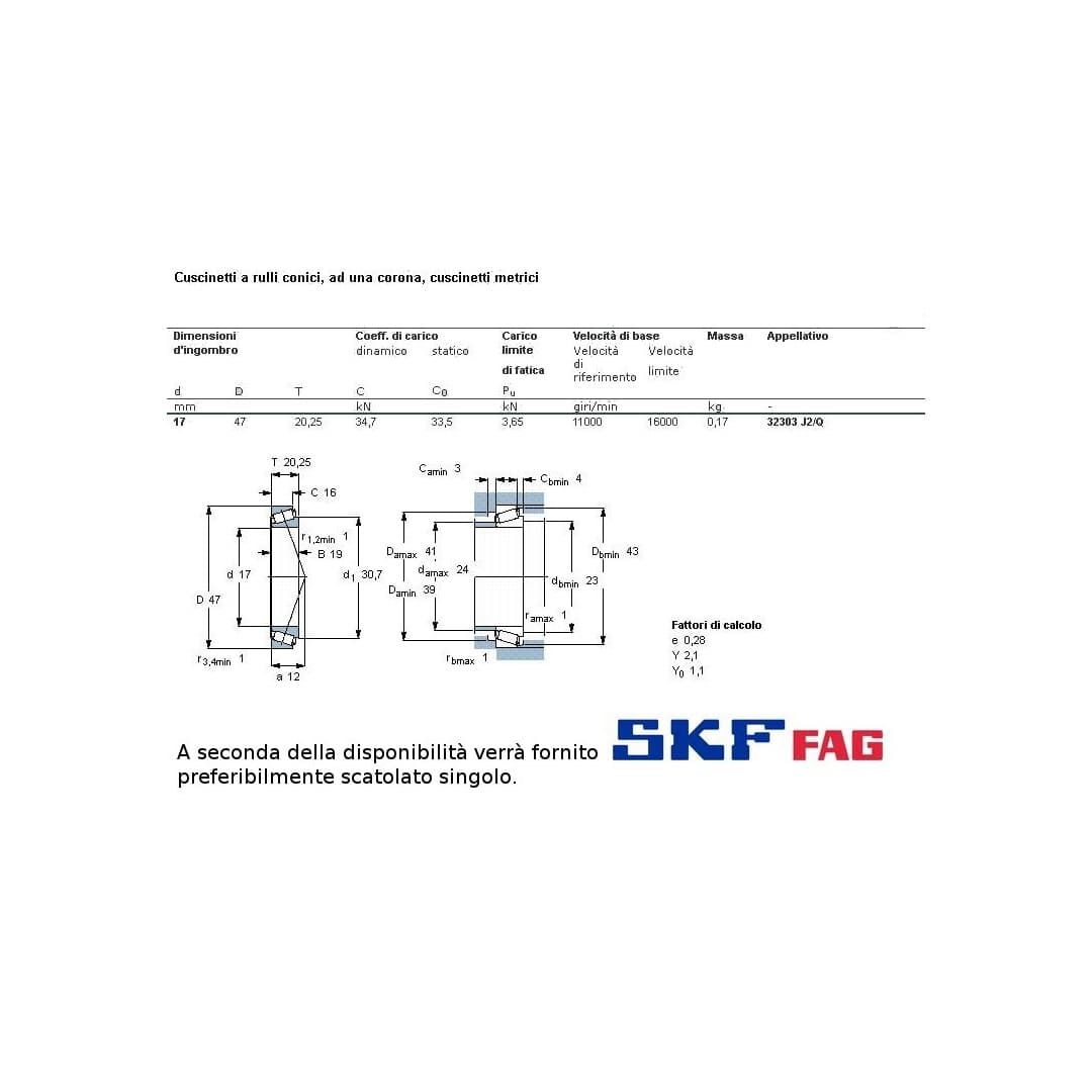 cuscinetto a rulli conici. Opportunamente montato tiene carico radiale ed assiale. Int. mm.17 - Est. 47 mm. - Spessore mm.20,3. SERIE PESANTE AD ALTA CONICITA' E ALTA DI SPESSORE. I rulli permettono, appoggiandosi su una linea di punti, di sopportare maggiore carico che le sfere, che appoggiano su un solo punto.