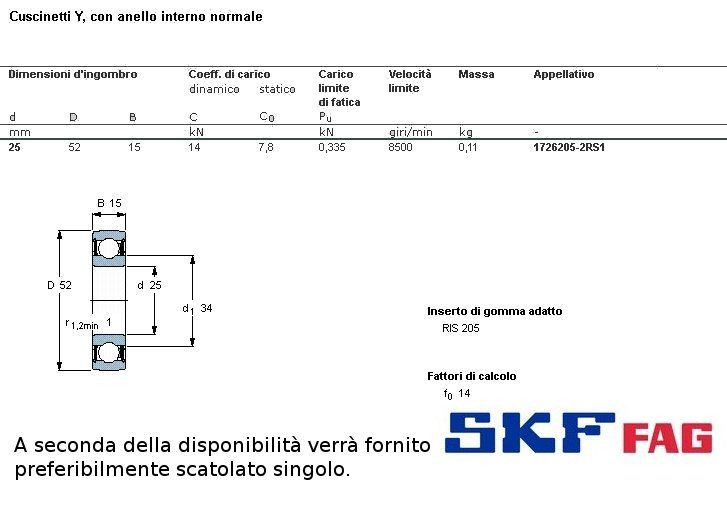 CUSCINETTO AD UN GIRO DI SFERE CON L'ESTERNO BOMBATO. DM. INTERNO MM. 25, DM. ESTERNO MM. 52, SPESSORE MM. 15