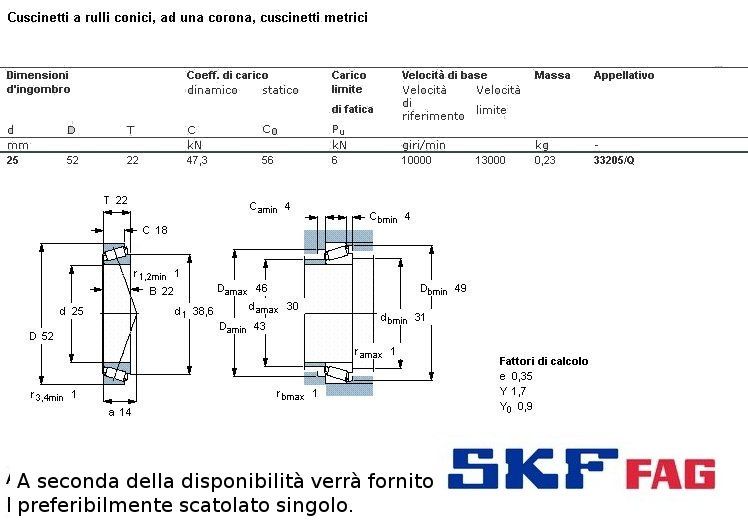 cuscinetto a rulli conici. Opportunamente montato tiene carico radiale ed assiale. I nt. mm.25 - Est. 52mm. - Spessore mm. 22 I rulli permettono, appoggiandosi su una linea di punti, di sopportare maggiore carico che le sfere, che appoggiano su un solo punto.
