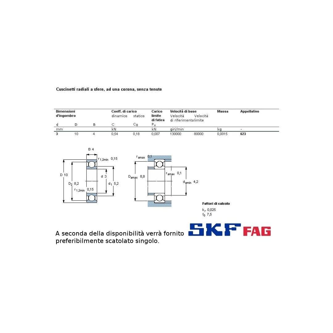 Cuscinetto a sfere, a carico radiale. Int. mm. 3, est. mm. 10, spessore mm. 4