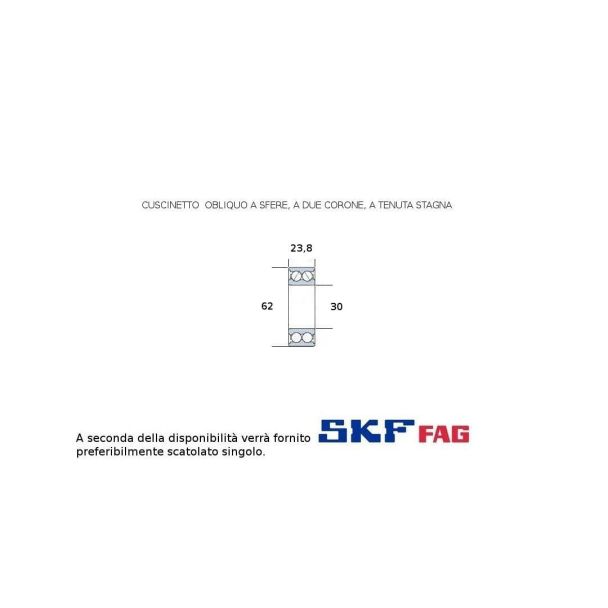 cuscinetto a due giri di sfere (sfere a vista) a carico radiale ed assiale. Int. mm.30 - Est. 62mm. - Spessore mm.23,8 SERIE NORMALE La sigla C3 significa che ha maggior tolleranza (agio) nelle sfere, consentendo la dilatazione delle stesse al calore dell'alta velocità.