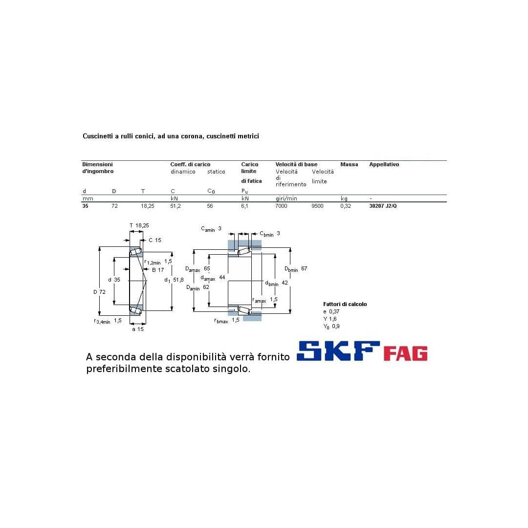 cuscinetto a rulli conici. Opportunamente montato tiene carico radiale ed assiale. Int. mm.35 - Est. 72mm. - Spessore mm.18,3. SERIE NORMALE. I rulli permettono, appoggiandosi su una linea di punti, di sopportare maggiore carico che le sfere, che appoggiano su un solo punto.