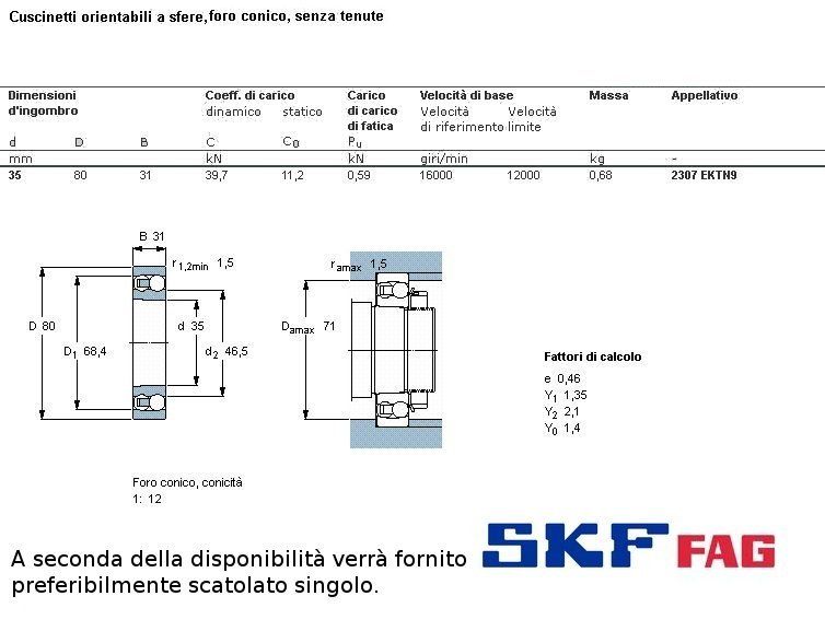 cuscinetto ad 2 giri di sfere orientabile a carico radiale (libero con sfere a vista). Int. mm.35 - Est. 80 mm. - Spessore mm. 31. (sopporta il doppio del carico di portata pur tenendo invariate le misure int. ed est. delle serie ad 1 giro di sfere: 6300 ed in più, grazie all'orientabilità della sede int. sopporta vibrazioni e disassamenti dell'albero)