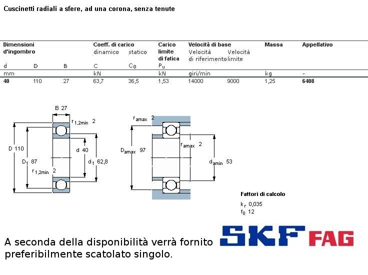 cuscinetto ad un giro di sfere (sfere a vista) a carico radiale.Int. mm.40 - Est. 110mm. - Spessore mm.27 SERIE SUPER PESANTE