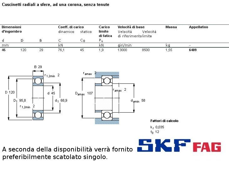 cuscinetto ad un giro di sfere (sfere a vista) a carico radiale .Int. mm.45 - Est. 120mm. - Spessore mm.29 SERIE SUPER PESANTE