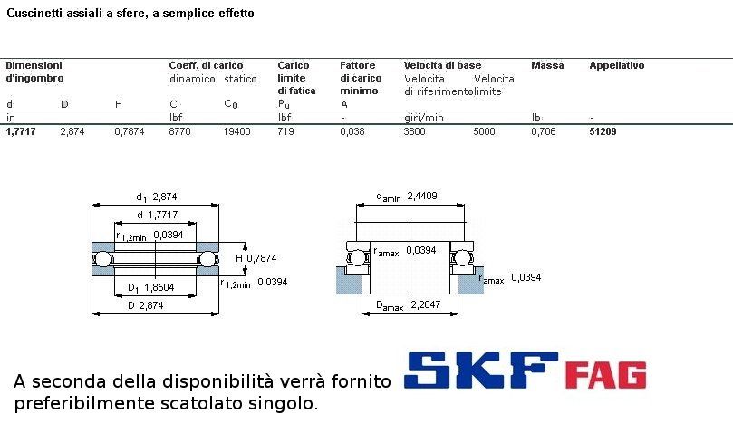 cuscinetto reggispinta. Solo a carico assiale. E' composto dalle due ghiere che ospirano la corona di sfere. Int. 45 Est. 73 Spess. 20. Serie LEGGERA