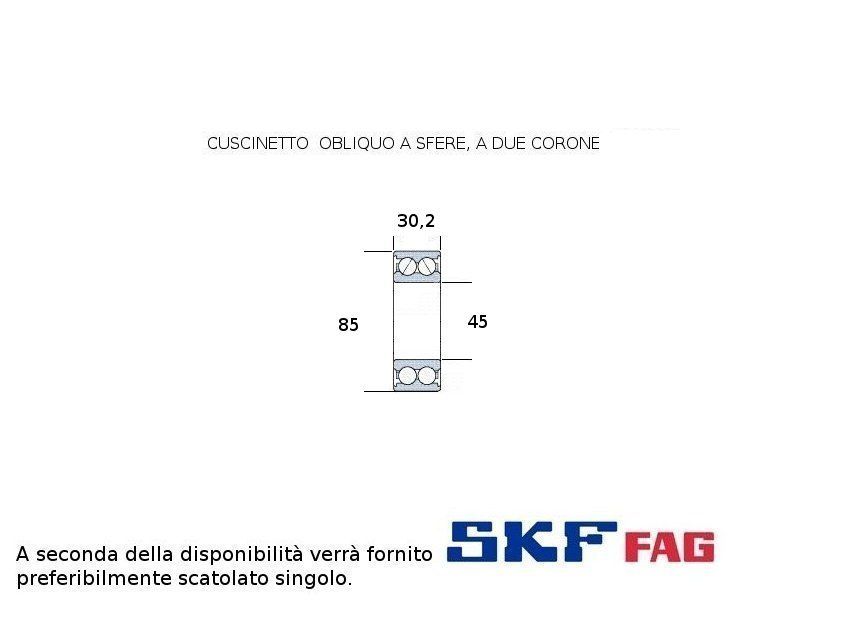 cuscinetto a due giri di sfere (sfere a vista) a carico radiale ed assiale. Int. mm.45 - Est. 85mm. - Spessore mm.30,2 SERIE NORMALE