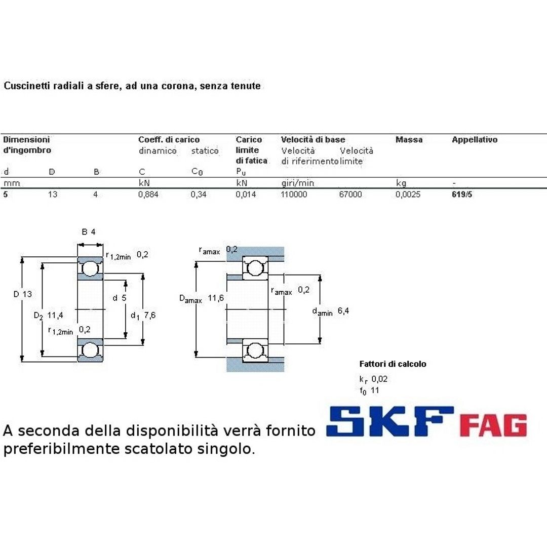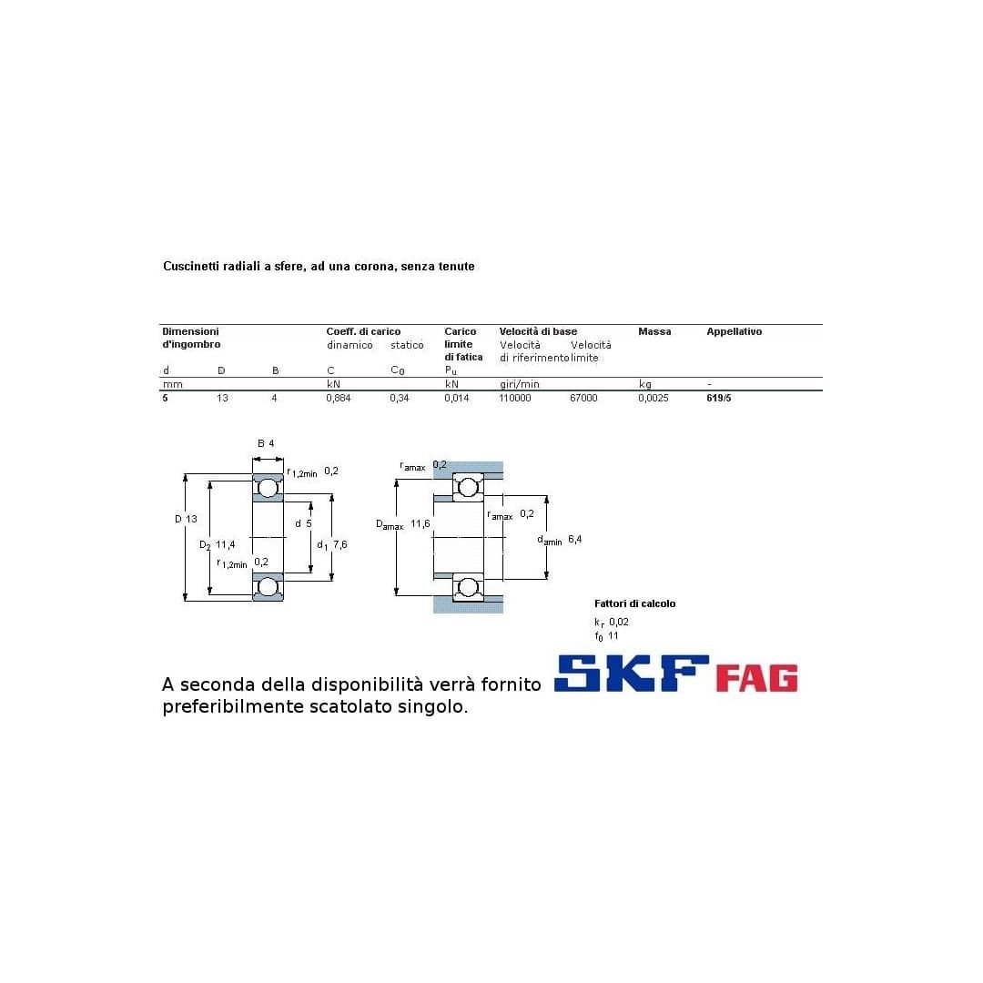 cuscinetto a sfere a carico radiale, super leggero. Int. mm. 5, est. mm. 13, spessore mm. 4