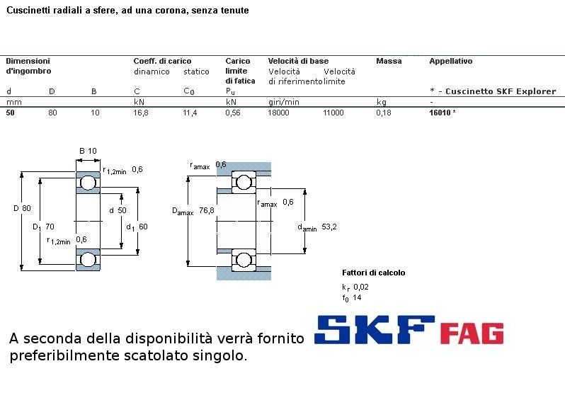 cuscinetto ad un giro di sfere (sfere a vista) a carico radiale.Int. mm.50 - Est. 80mm. - Spessore mm.10 SERIE SUPER LEGGERA