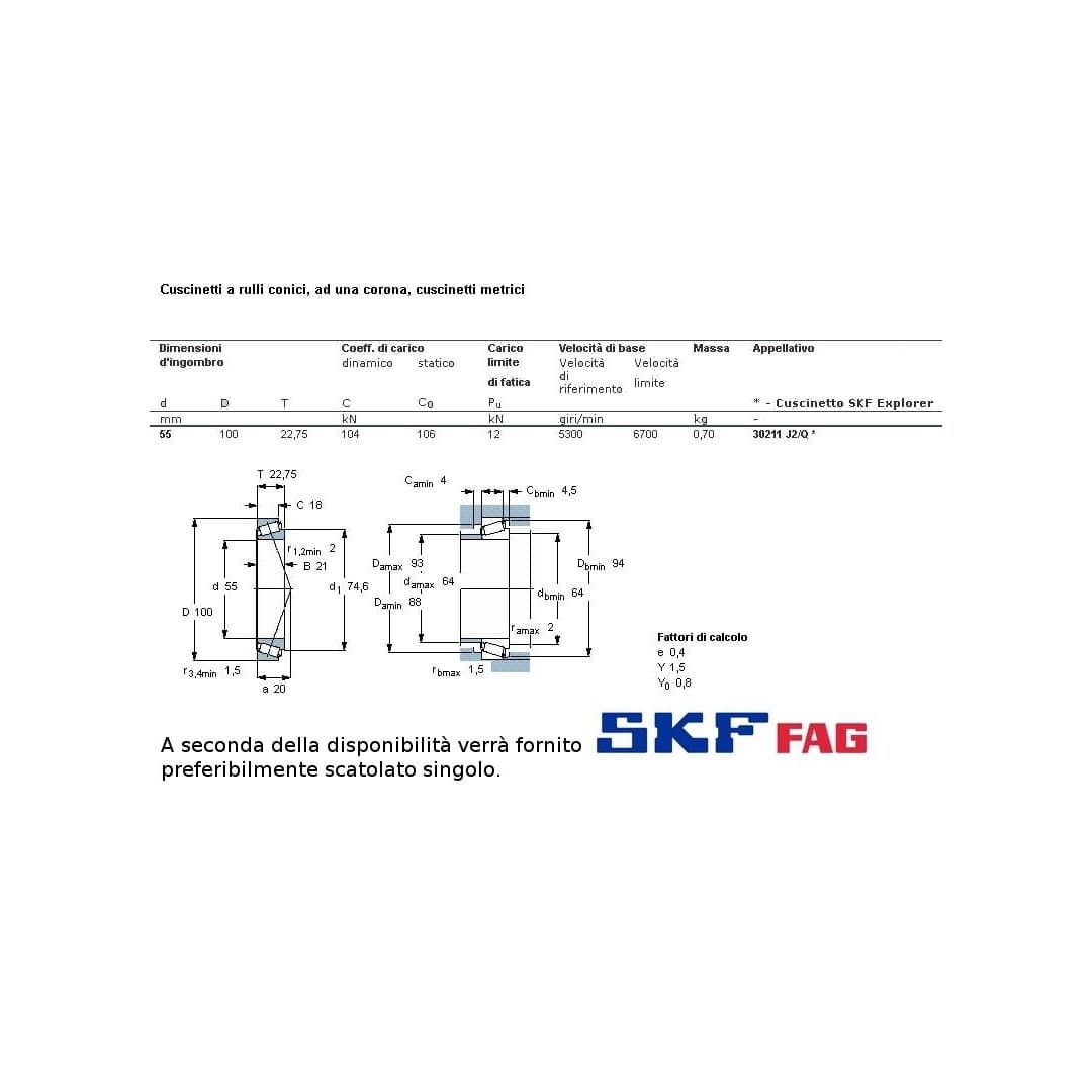 cuscinetto a rulli conici. Opportunamente montato tiene carico radiale ed assiale. Int. mm.55 - Est. 100mm. - Spessore mm.22,8. SERIE NORMALE. I rulli permettono, appoggiandosi su una linea di punti, di sopportare maggiore carico che le sfere, che appoggiano su un solo punto.
