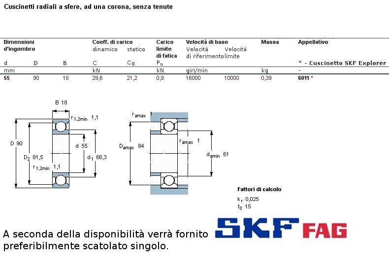 cuscinetto ad un giro di sfere (sfere a vista) a carico radiale.Int. mm.55 - Est. 90mm. - Spessore mm.18SERIE LEGGERA