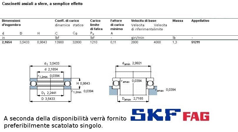 cuscinetto reggispinta. Solo a carico assiale. E' composto dalle due ghiere che ospirano la corona di sfere. Int. 55 Est. 90 Spess. 25. Serie LEGGERA