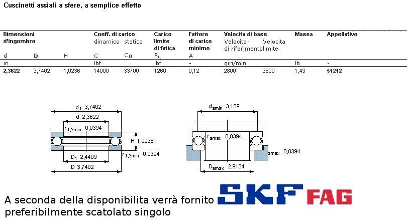 cuscinetto reggispinta. Solo a carico assiale. E' composto dalle due ghiere che ospirano la corona di sfere. Int. 60 Est. 95 Spess. 26. Serie LEGGERA