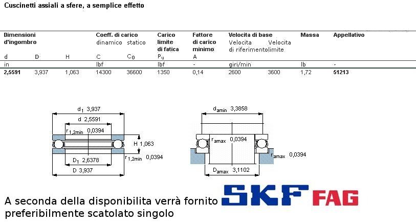 cuscinetto reggispinta. Solo a carico assiale. E' composto dalle due ghiere che ospirano la corona di sfere. Int. 65 Est. 100 Spess. 27. Serie LEGGERA
