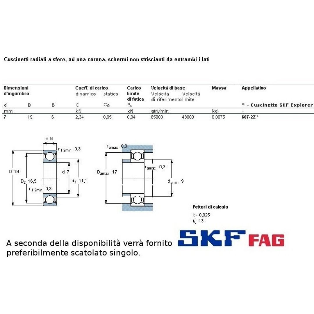 cuscinetto ad un giro di sfere a schermatura in ferro a carico radiale.Int. mm.7 - Est. 19mm. - Spessore mm.6