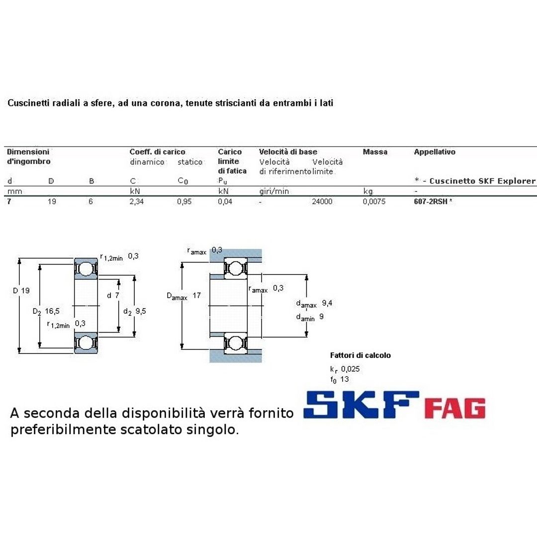 cuscinetto ad un giro di sfere a schermatura stagna (in gomma) a carico radiale.Int. mm.7 - Est. 19mm. - Spessore mm.6