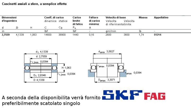 cuscinetto reggispinta. Solo a carico assiale. E' composto dalle due ghiere che ospirano la corona di sfere. Int. 70 Est. 105 Spess. 27. Serie LEGGERA