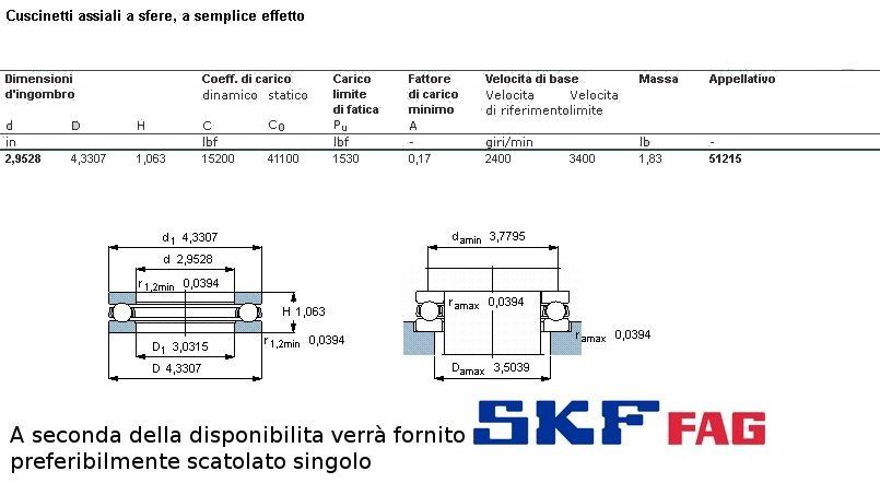cuscinetto reggispinta. Solo a carico assiale. E' composto dalle due ghiere che ospirano la corona di sfere. Int. 75 Est. 110 Spess. 27. Serie LEGGERA