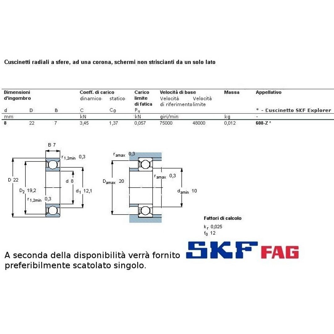 cuscinetto ad un giro di sfere con schermatura in ferro da un solo lato, a carico radiale. Int. mm.8 - Est. 22mm. - Spessore mm.7