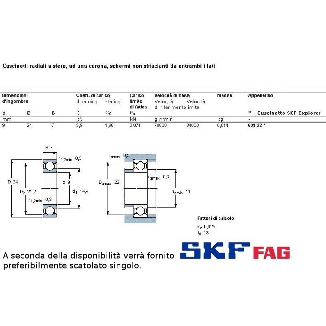 cuscinetto ad un giro di sfere a schermatura in ferro a carico radiale.Int. mm.9 - Est. 24mm. - Spessore mm.7