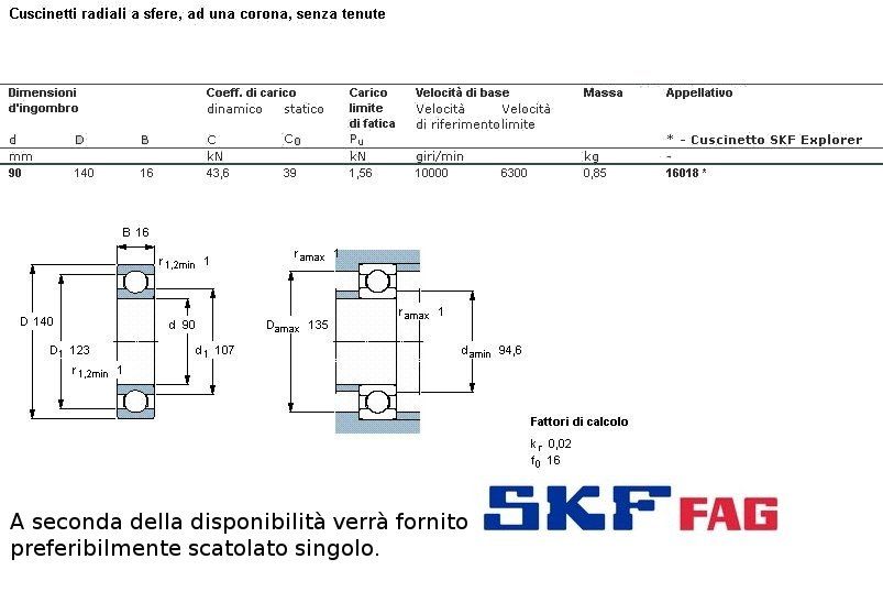 cuscinetto ad un giro di sfere (sfere a vista) a carico radiale.Int. mm.90 - Est. 140mm. - Spessore mm.16 SERIE SUPER LEGGERA