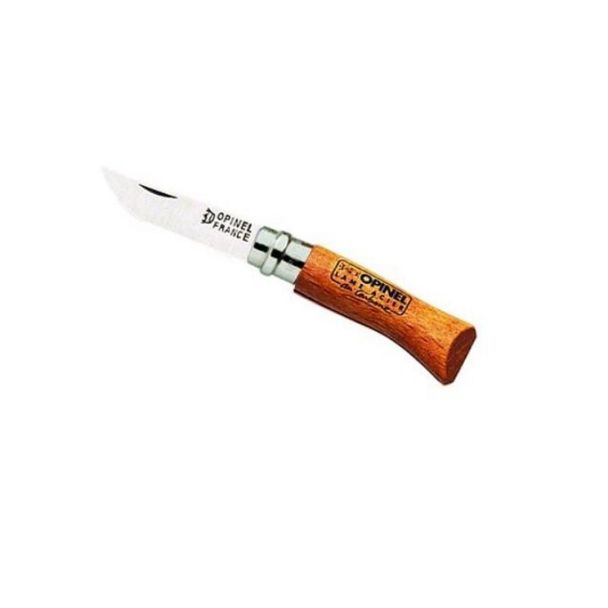 COLTELLINO OPINEL VIROBLOC N 9 LAMA ACCIAIO AD ALTO TENORE DI CARBONIO MANICO IN FAGGIO VERNICIATO CON ANELLO DI SICUREZZA PER BLOCCARE LA LAMA