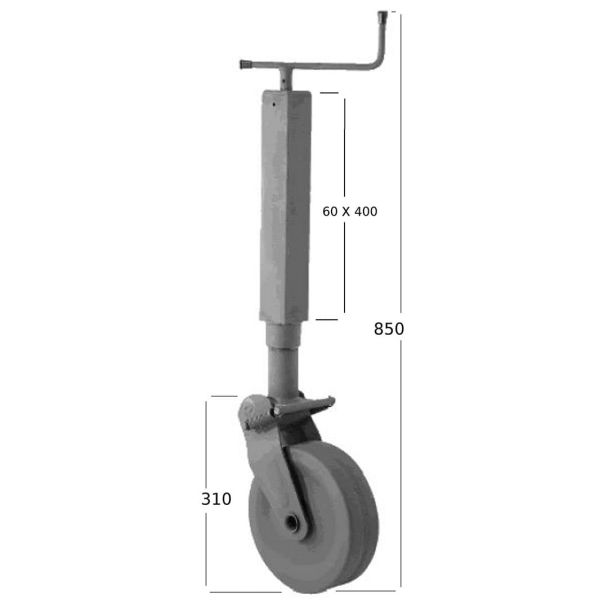 APPOGGIO DM.60X400 RUOTA IN FERRO 220 X 60. RIBALTAMENTO A MOLLA