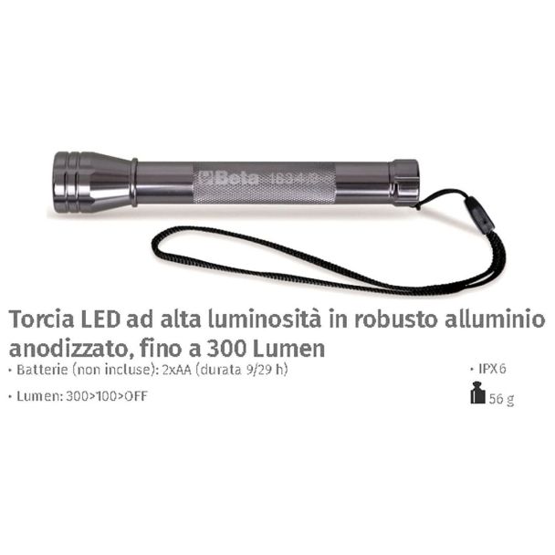 TORCIA LED FINO A 90 LUMEN IN ROBUSTO ALLUMINIO ANODIZZATO L. 150 mm