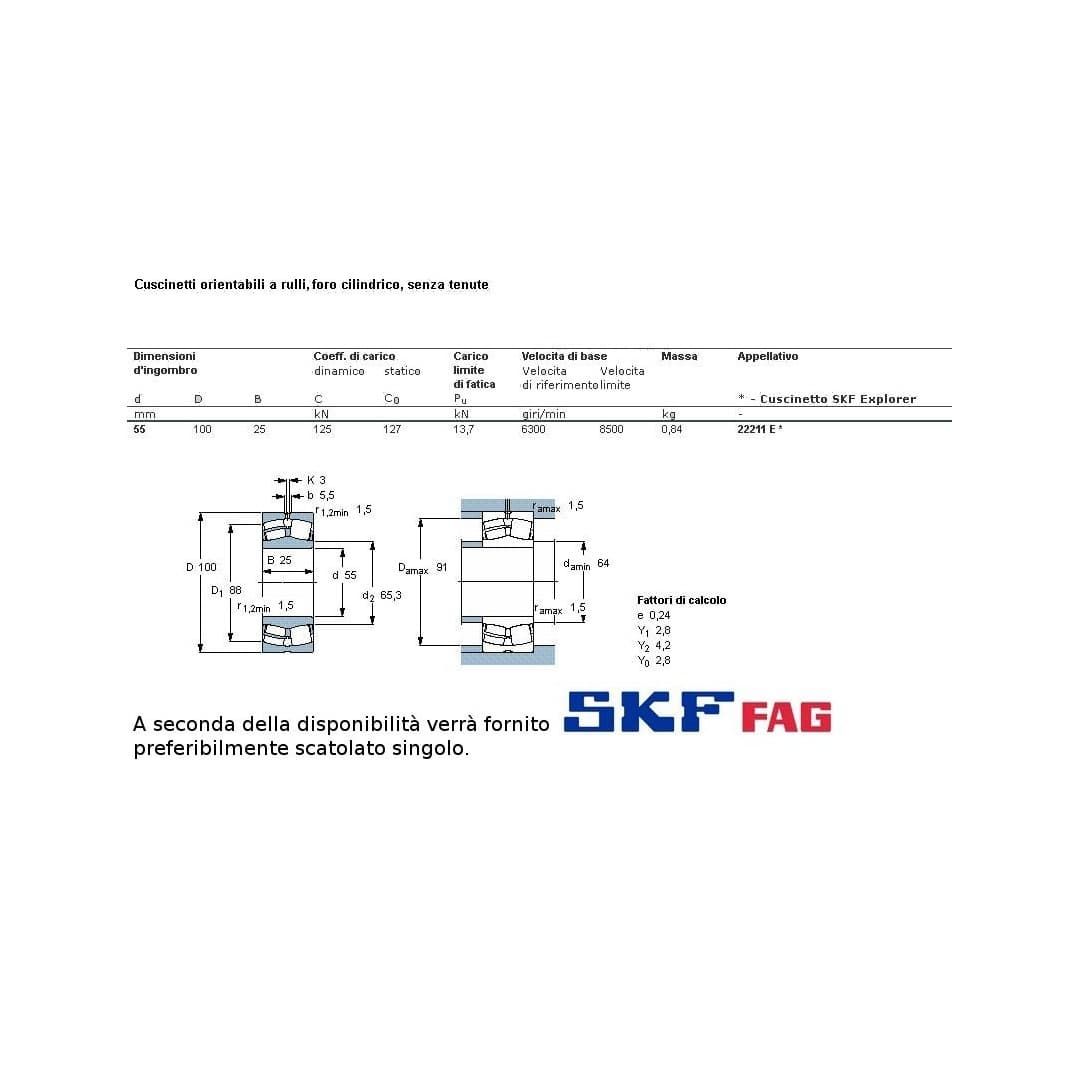 cuscinetto a rulli a botte. Oscillante. Tiene carico radiale. Int. mm.55 - Est. 100mm. - Spessore mm.25. SERIE NORMALE. I rulli a botte permettono, appoggiandosi su una linea di punti, di sopportare maggiore carico che le sfere, che appoggiano su un solo punto ed in più, essendo "a botte" permettono l'oscillazione dell'albero.