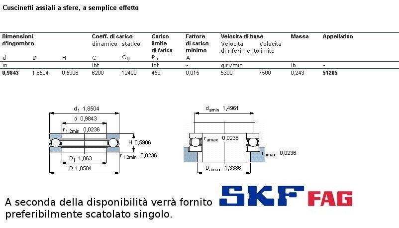 cuscinetto reggispinta. Solo a carico assiale. E' composto dalle due ghiere che ospirano la corona di sfere. Int. 25 Est. 47 Spess. 15. Serie LEGGERA