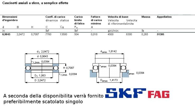 cuscinetto reggispinta. Solo a carico assiale. E' composto dalle due ghiere che ospirano la corona di sfere. Int. 25 Est. 52 Spess. 18. Serie NORMALE