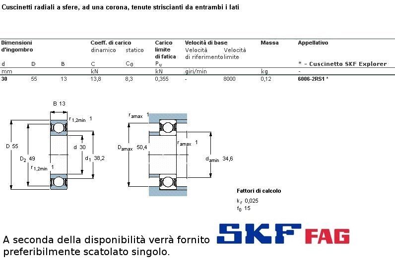 cuscinetto ad un giro di sfere a schermatura stagna (in gomma) a carico radiale.Int. mm.30 - Est. 55mm. - Spessore mm.13 SERIE LEGGERA