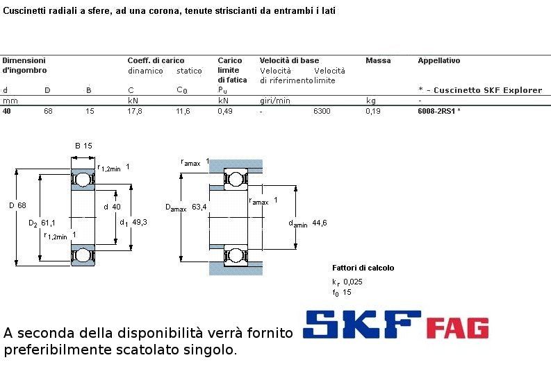 cuscinetto ad un giro di sfere a schermatura stagna (in gomma) a carico radiale.Int. mm.40 - Est. 68mm. - Spessore mm.15SERIE LEGGERA