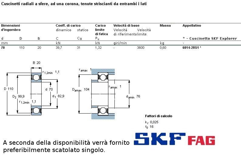 cuscinetto ad un giro di sfere a schermatura stagna (in gomma) a carico radiale.Int. mm.70 - Est. 110mm. - Spessore mm.20 SERIE LEGGERA