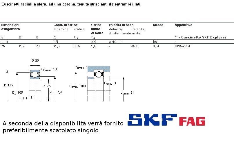 cuscinetto ad un giro di sfere a schermatura stagna (in gomma) a carico radiale.Int. mm.75 - Est. 115mm. - Spessore mm.20 SERIE LEGGERA