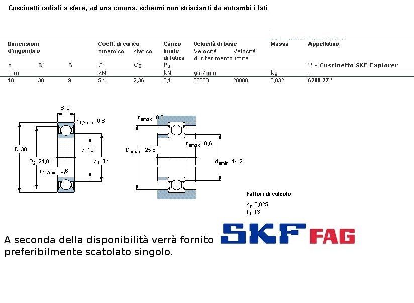 cuscinetto ad un giro di sfere a schermatura in ferro a carico radiale.Int. mm.10 - Est. 30mm. - Spessore mm.9 SERIE NORMALE