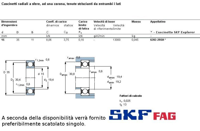 cuscinetto ad un giro di sfere a schermatura stagna (in gomma) a carico radiale. Int. mm.15 - Est. 35mm. - Spessore mm.11 SERIE NORMALE