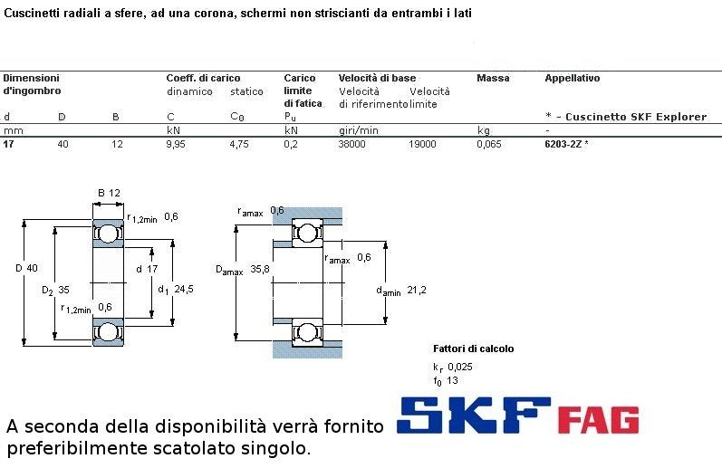 cuscinetto ad un giro di sfere a schermatura in ferro a carico radiale.Int. mm.17 - Est. 40mm. - Spessore mm.12 SERIE NORMALE