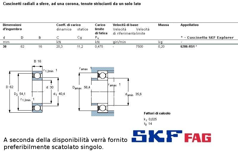 cuscinetto ad un giro di sfere a schermatura stagna (in gomma) da un solo lato, a carico radiale. Int. mm.30 - Est. 62mm. - Spessore mm.16 SERIE NORMALE