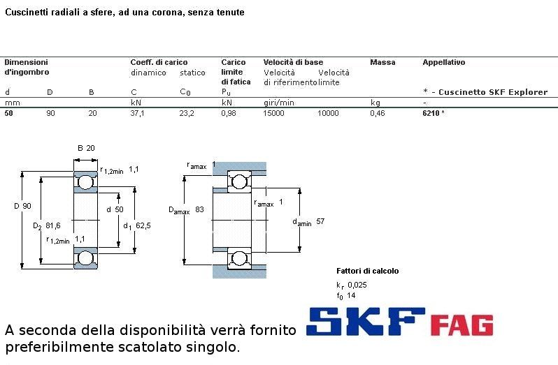 cuscinetto ad un giro di sfere (sfere a vista) a carico radiale.Int. mm.50 - Est. 90mm. - Spessore mm.20 SERIE NORMALE