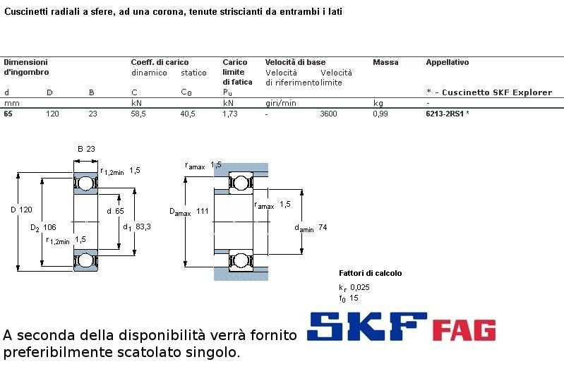 cuscinetto ad un giro di sfere a schermatura stagna (in gomma) a carico radiale.Int. mm.65 - Est. 120mm. - Spessore mm.23 SERIE NORMALE