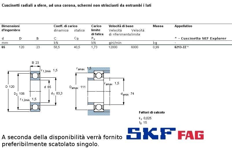 cuscinetto ad un giro di sfere a schermatura in ferro a carico radiale.Int. mm.65 - Est. 120mm. - Spessore mm.23 SERIE NORMALE