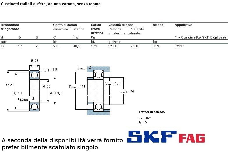 cuscinetto ad un giro di sfere (sfere a vista) a carico radiale.Int. mm.65 - Est. 120mm. - Spessore mm.23 SERIE NORMALE