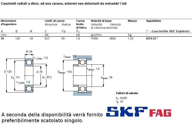 cuscinetto ad un giro di sfere a schermatura in ferro a carico radiale.Int. mm.70 - Est. 125mm. - Spessore mm.24 SERIE NORMALE