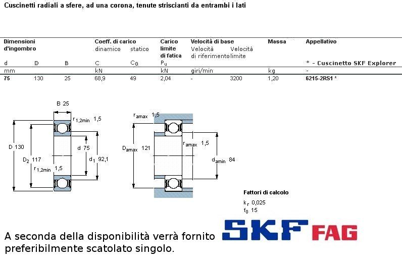 cuscinetto ad un giro di sfere a schermatura stagna (in gomma) a carico radiale.Int. mm.75 - Est. 130mm. - Spessore mm.25 SERIE NORMALE